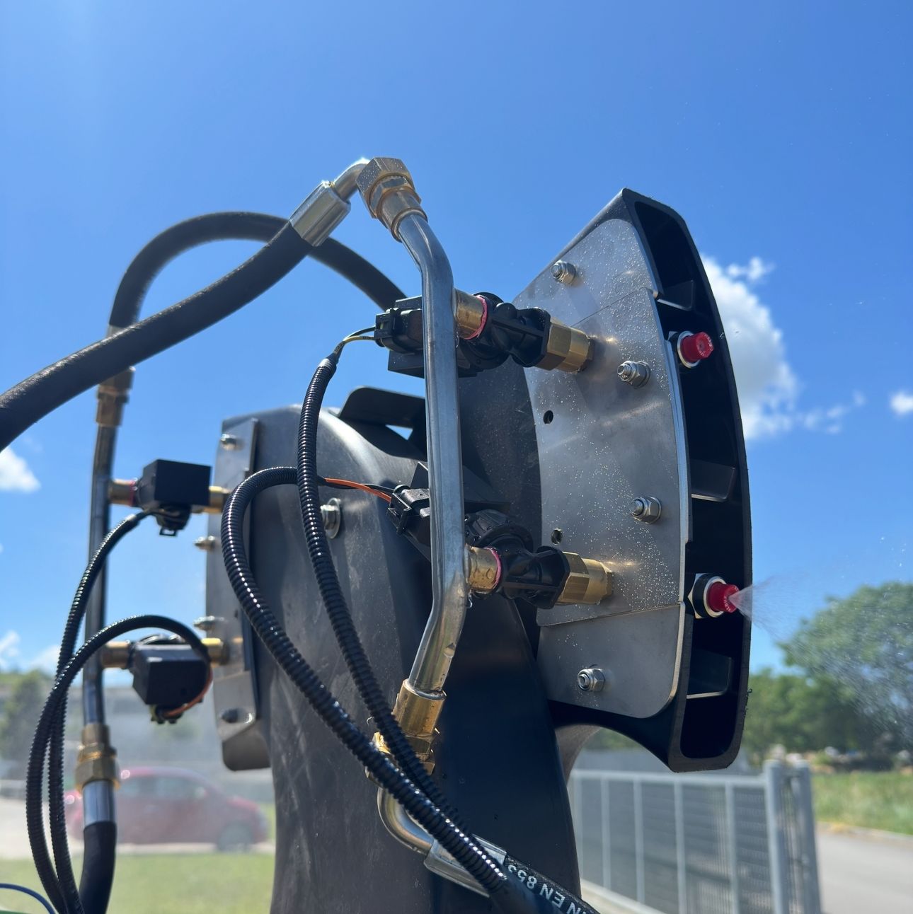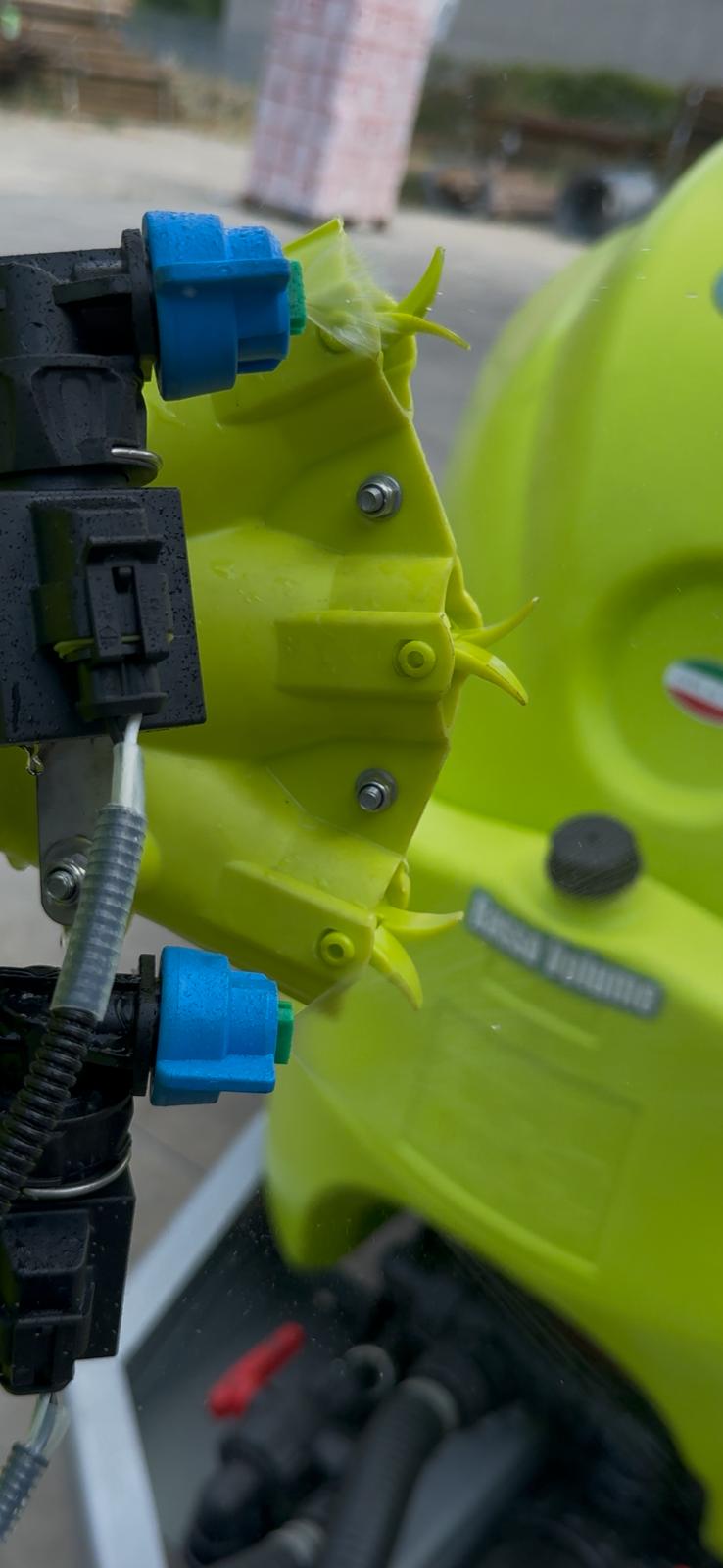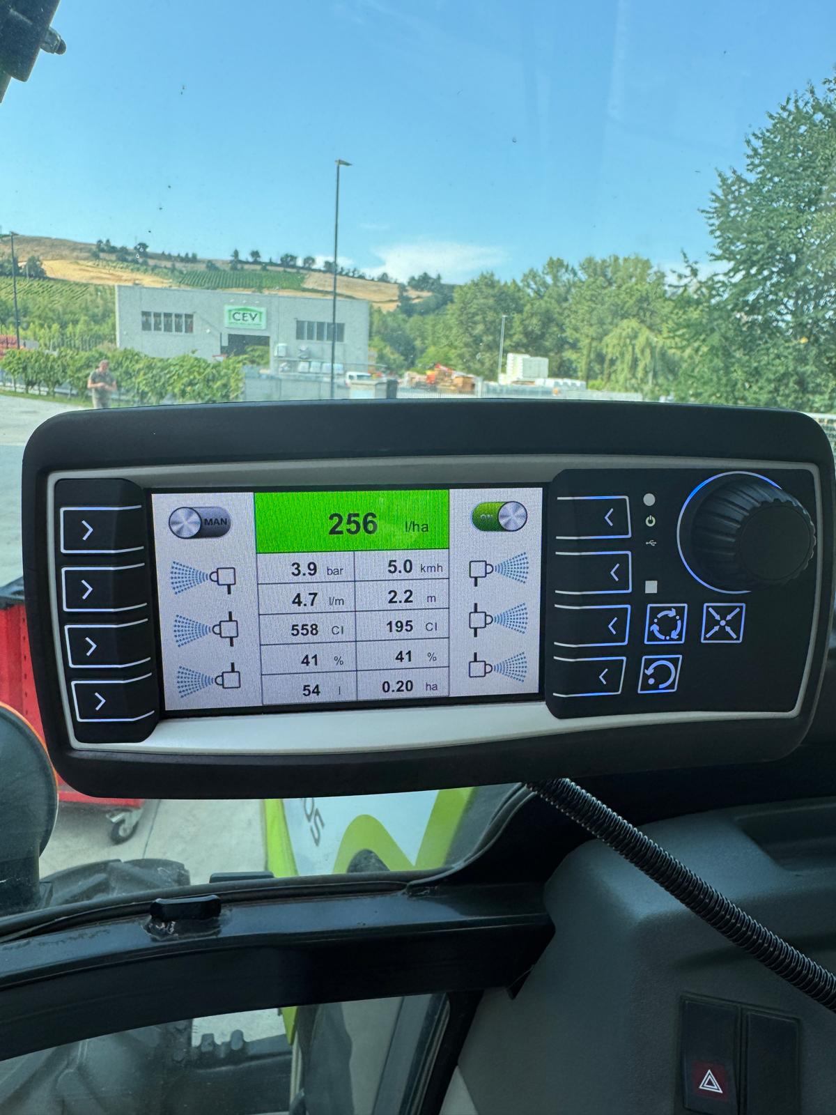 Es besteht aus einem Dual-Technologie-Sensor, der an der Vorderseite des Traktors installiert wird, einer Steuerelektronik sowie einer Reihe von Magnetventilen, die die einzelnen Düsen öffnen.